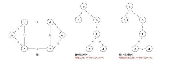 最小生成树,就是所有生成树中边权之和最小的那一棵。如下图所示: