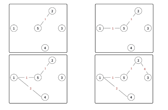 举个通俗的例子:把所有边想象成 “候选公路”,按造价从低到高排序。每次选造价最低的公路,只要它能连接两个之前不连通的城市,就修建这条公路;如果它连接的是已经连通的城市,就放弃这条公路,直到所有城市都连通。