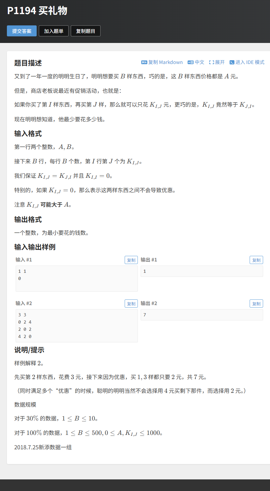题目链接:https://www.luogu.com.cn/problem/P1194