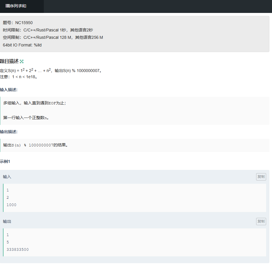 }示例输入:1 → 输出 1(1²=1)2 → 输出 5(1+4=5)1000 → 输出 333833500