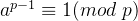 若 p 为质数,且整数 a 与 p互质(即gcd(a,p)=1),则有