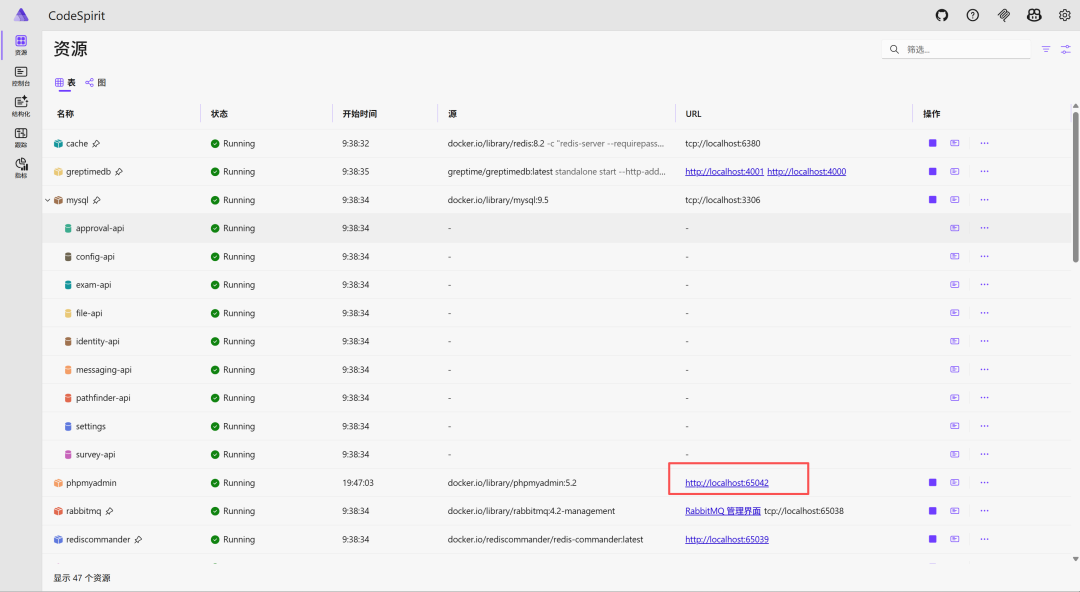# 或在Aspire Dashboard中查看数据库状态和连接信息如果系统内存不足,可以: