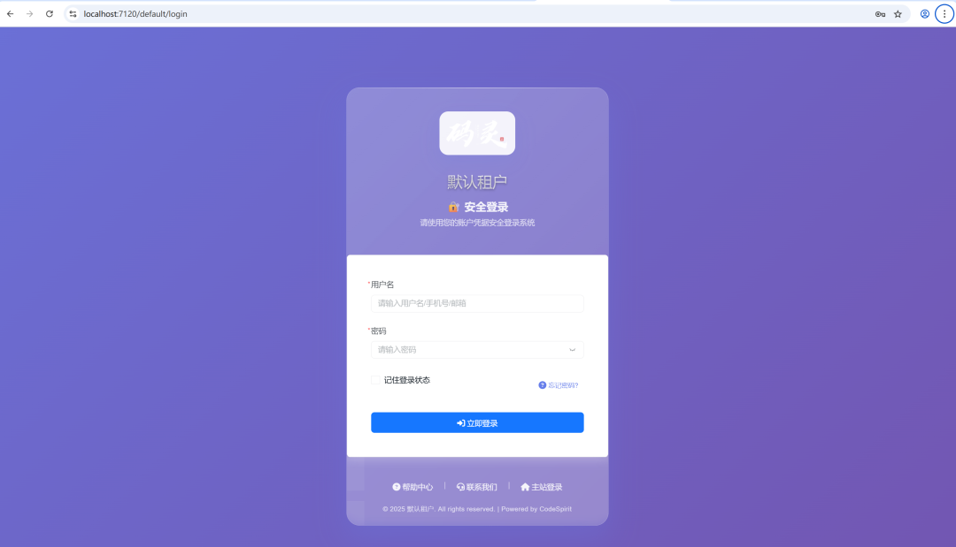 租户平台(默认租户):https://localhost:7120/default/login