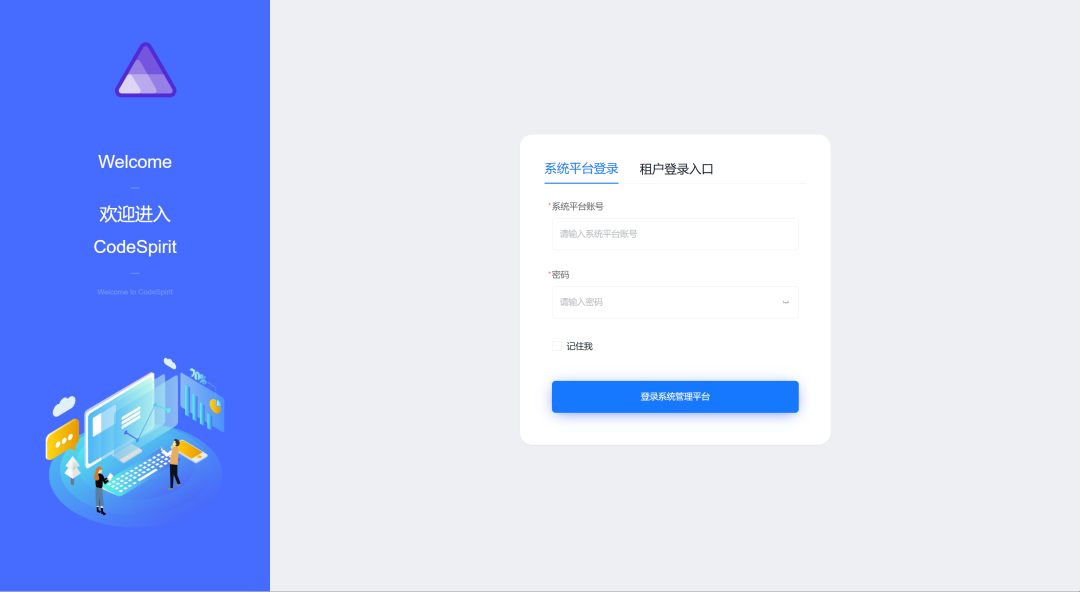 systemadmin / 密码:CodeSpirit@2025public 应用LLM 和 AiFormFillLLM 配置,设置 ApiKey提示: 如果暂时不需要使用 AI 功能,可以保持 ApiKey 为空,但相关 AI 功能将无法正常工作。