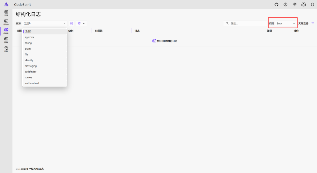 打开结构化日志面板,检查是否存在错误: