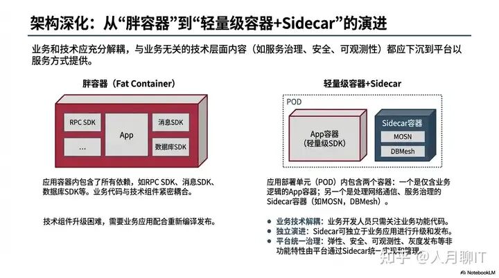 随着架构的落地,我们还需要持续优化,实现业务和技术的充分解耦。核心方向是从 “胖容器” 演进到 “轻量级容器 + Sidecar” 模式。