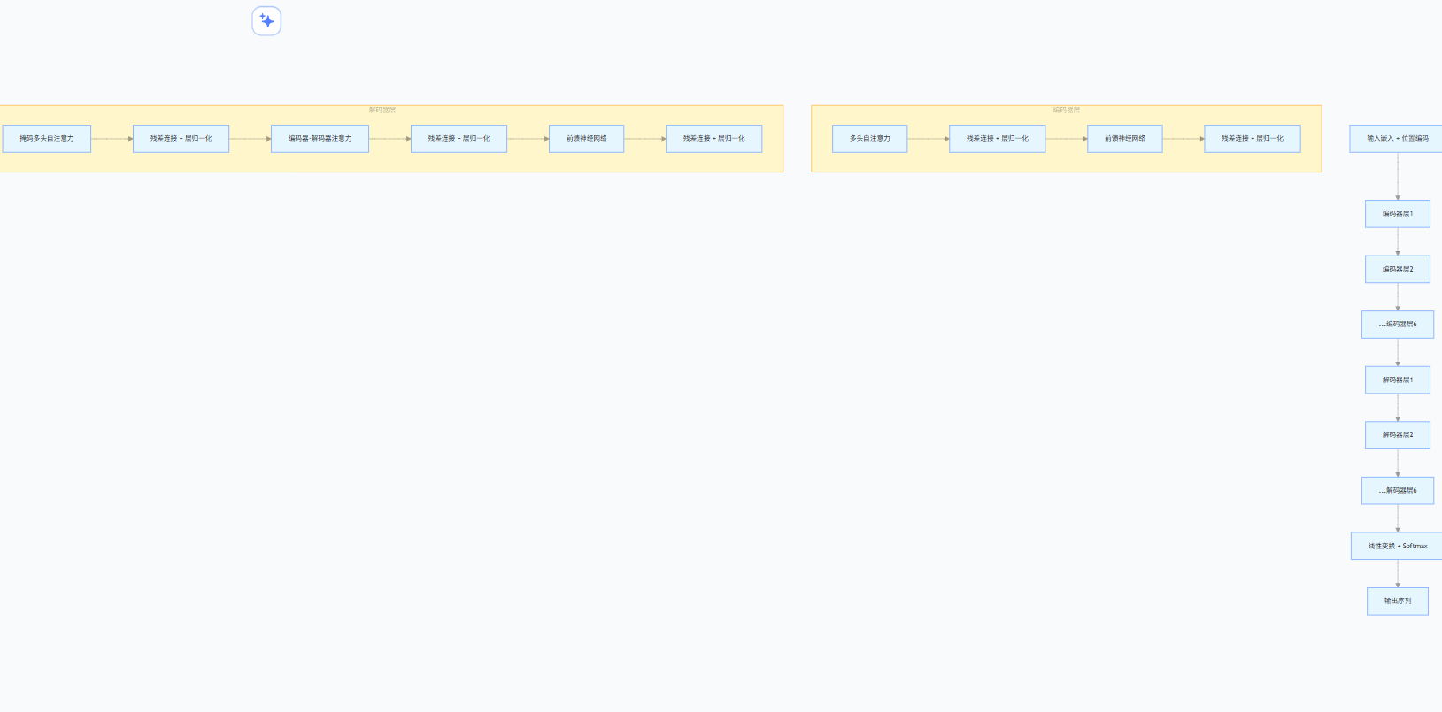 主流大模型均基于 Transformer 架构搭建,核心是 “注意力机制”—— 让模型处理信息时聚焦关键内容(如理解句子时关注主语和宾语)。大模型通过堆叠数十甚至上百层编码器与解码器形成深度结构:GPT-4 层数超 90 层,能捕捉数据中极细微的关联,例如理解多轮对话的上下文逻辑。