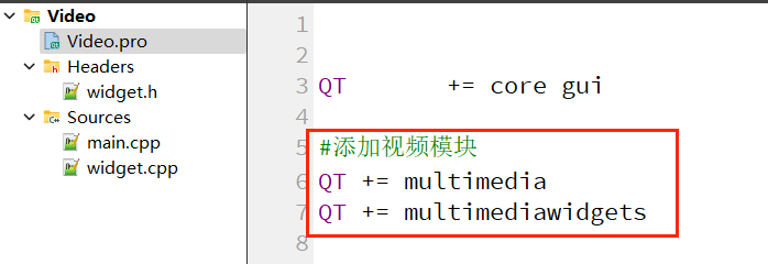 在.pro文件中添加multimedia和multimediawidgets模块: