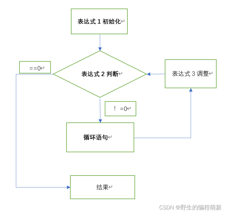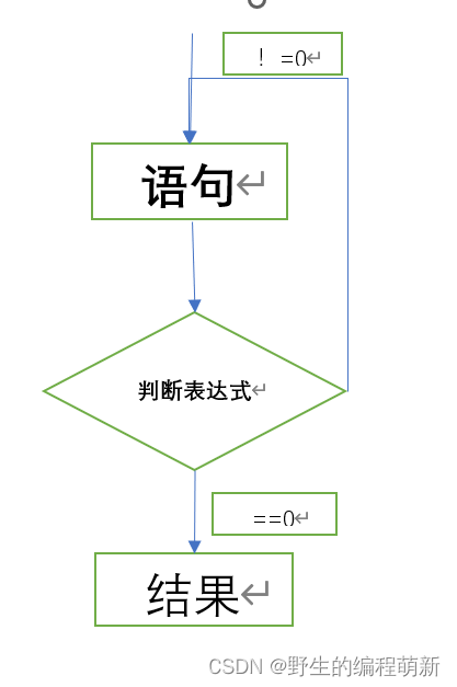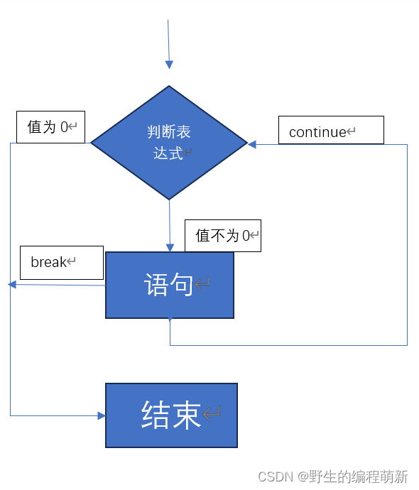 首先上来先执行判断表达式,表达式的值为0,循环直接结束;表达式的值不为0,则执行循环语句,语句执行完后再继续判断,是否进行下一次判断。(不太会画图,凑合看吧。。)