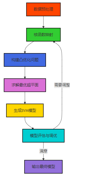 SVM的核心价值在于它解决了传统分类算法的一个关键问题:如何在高维空间中找到最优超平面,使得分类器具有最强的泛化能力。SVM通过最大化分类间隔(Margin)来实现这一目标,即寻找一个超平面,使得它到最近的训练样本点的距离最大。