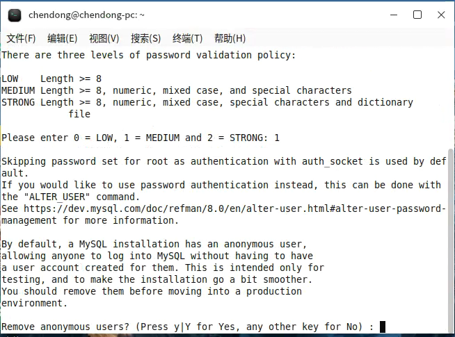 4.安装配置mysql,设置密码安全策略,移除匿名用户,进制root用户远程访问,如下所示