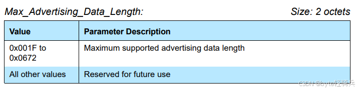 #define HCI_OP_LE_READ_MAX_ADV_DATA_LEN 0x0024 // 这是一个示例操作码,实际值可能不同