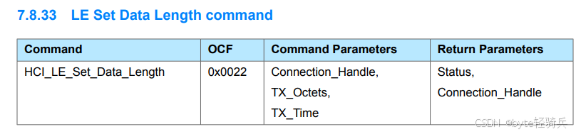 HCI_LE_Set_Data_Length命令。需要查阅蓝牙控制器的文档,以确保它支持该命令,并了解任何特定的限制或要求。