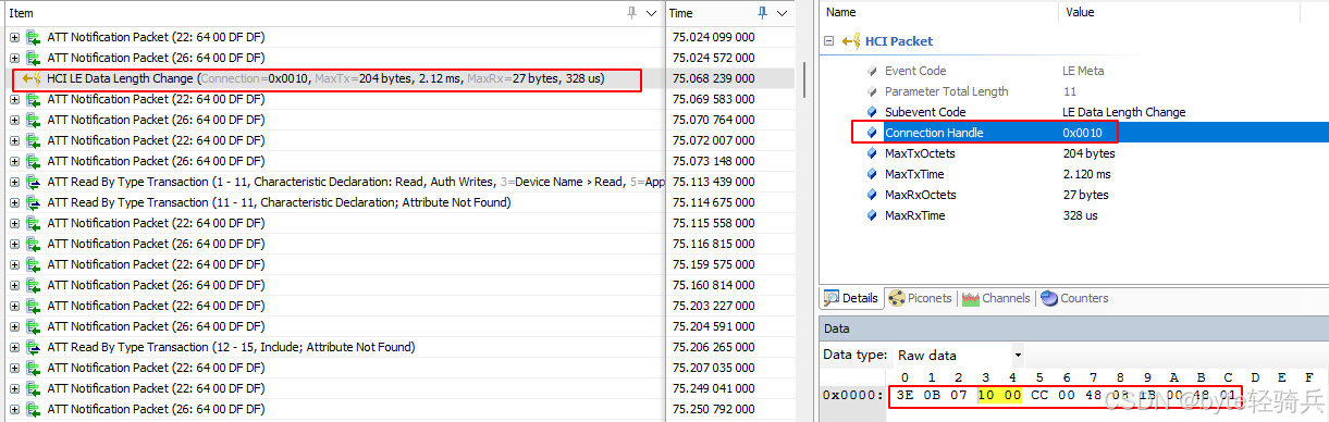 // 检查是否有HCI_LE_Data_Length_Change事件(这取决于蓝牙控制器的实现和配置)
