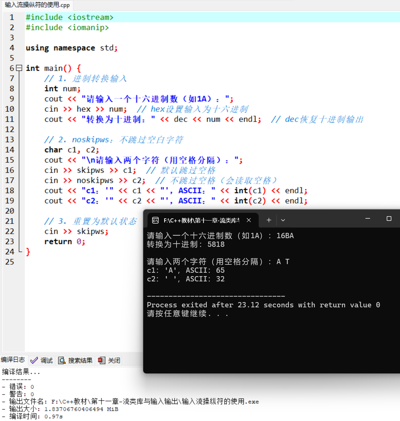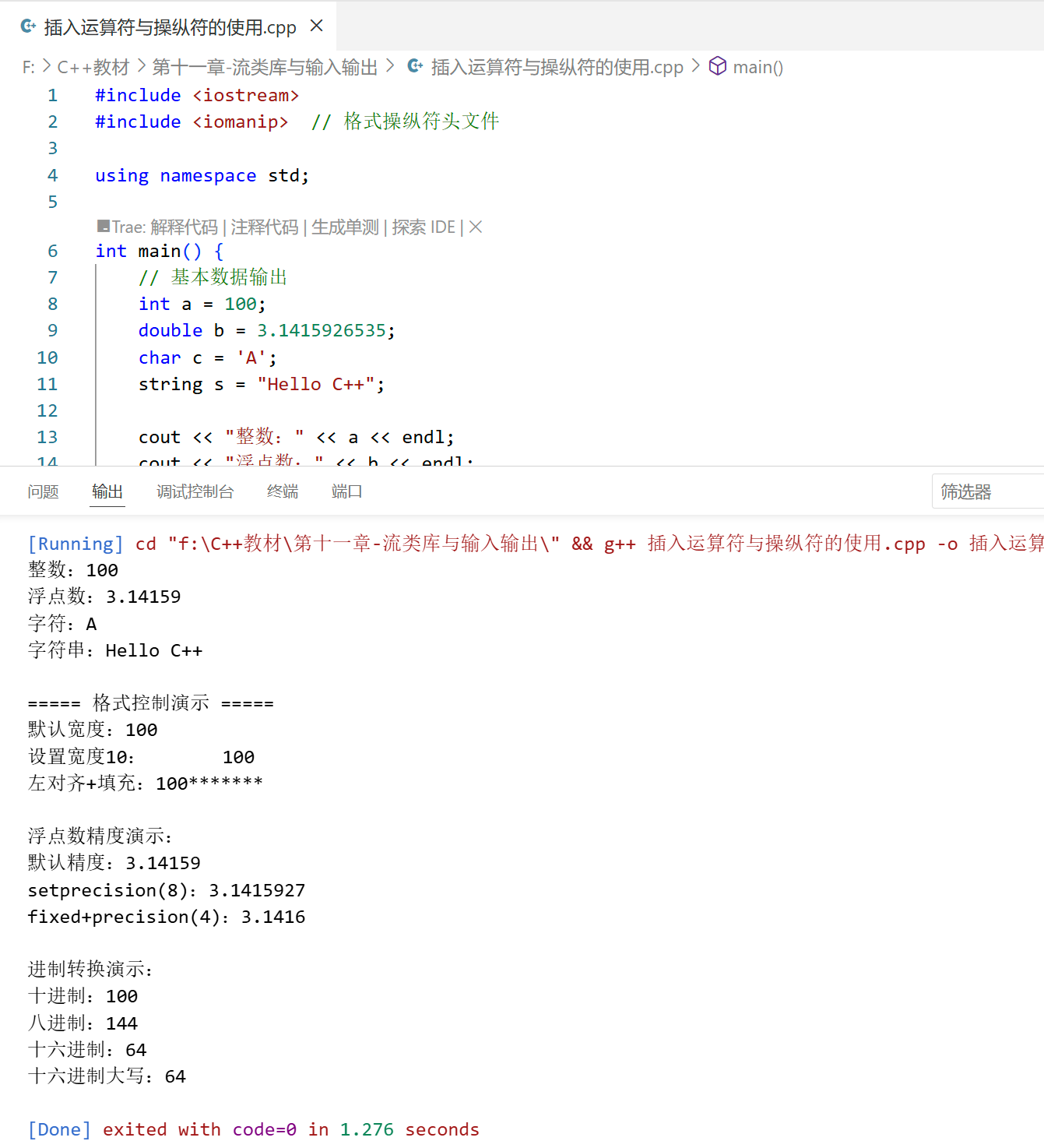 本章详细介绍了 C++ 流类库与输入输出的核心知识,主要包括: