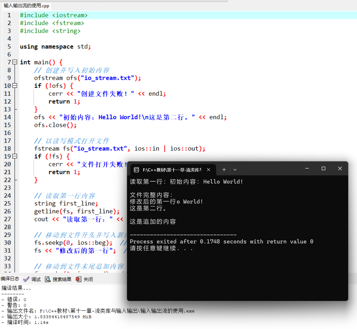 wcout << L"宽字符文件写入完成!" << endl;