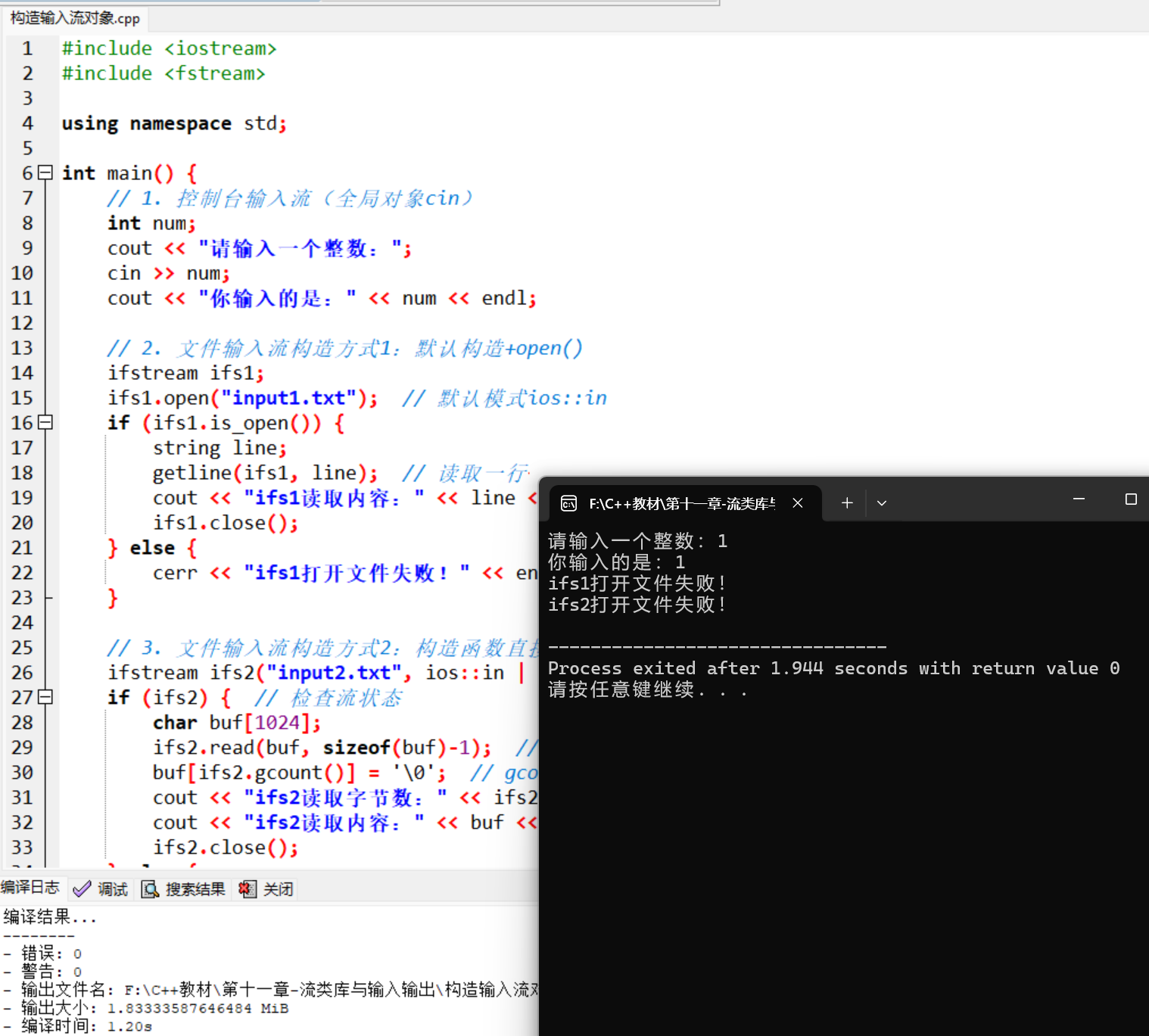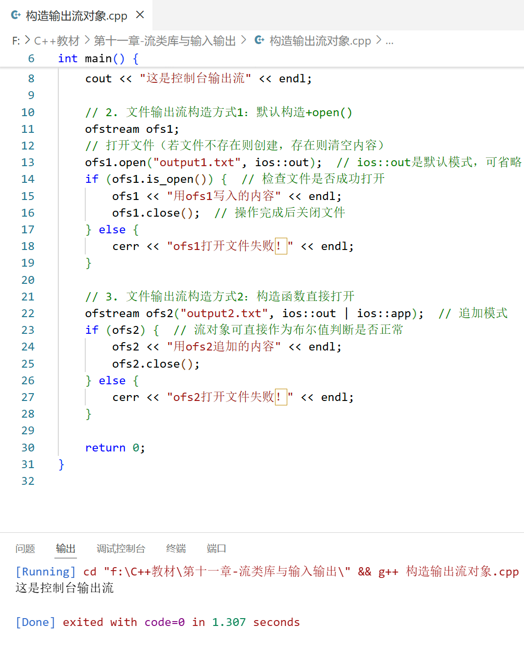 ofs1.open("output1.txt", ios::out); // ios::out是默认模式,可省略