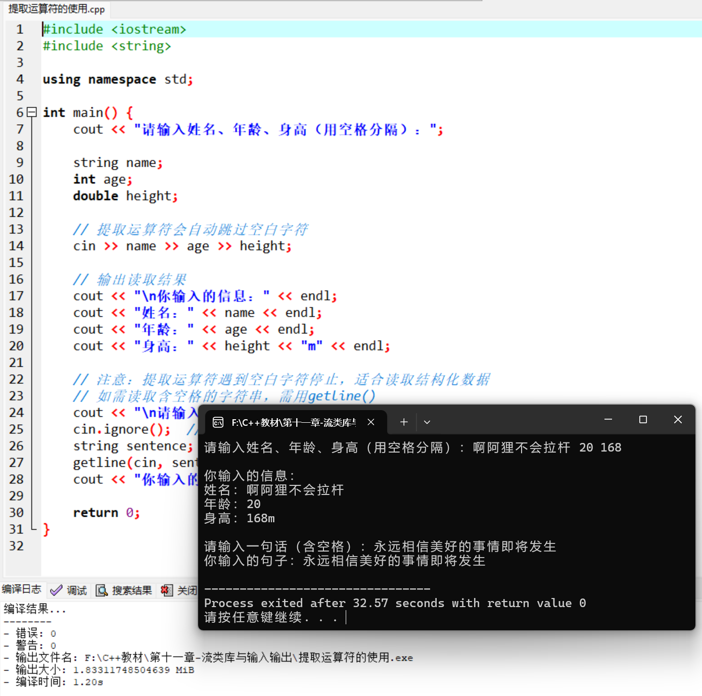 // 继承istringstream和ostringstream的功能