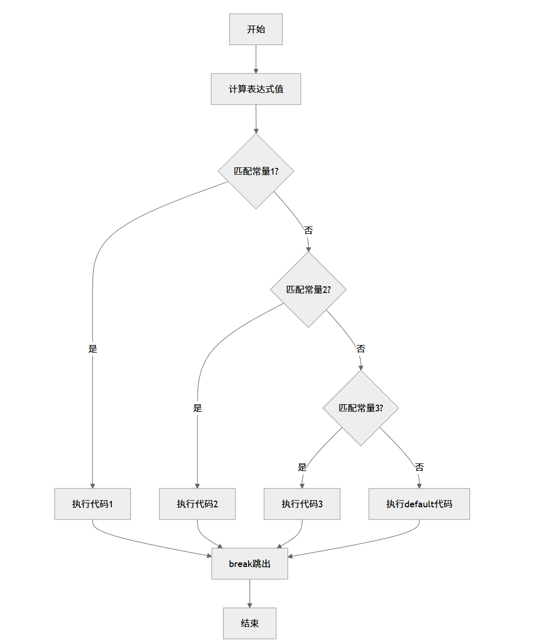switch 语句用于多值匹配场景(判断一个变量与多个常量的匹配关系),Java 7 + 支持 int、char、String、枚举等类型。