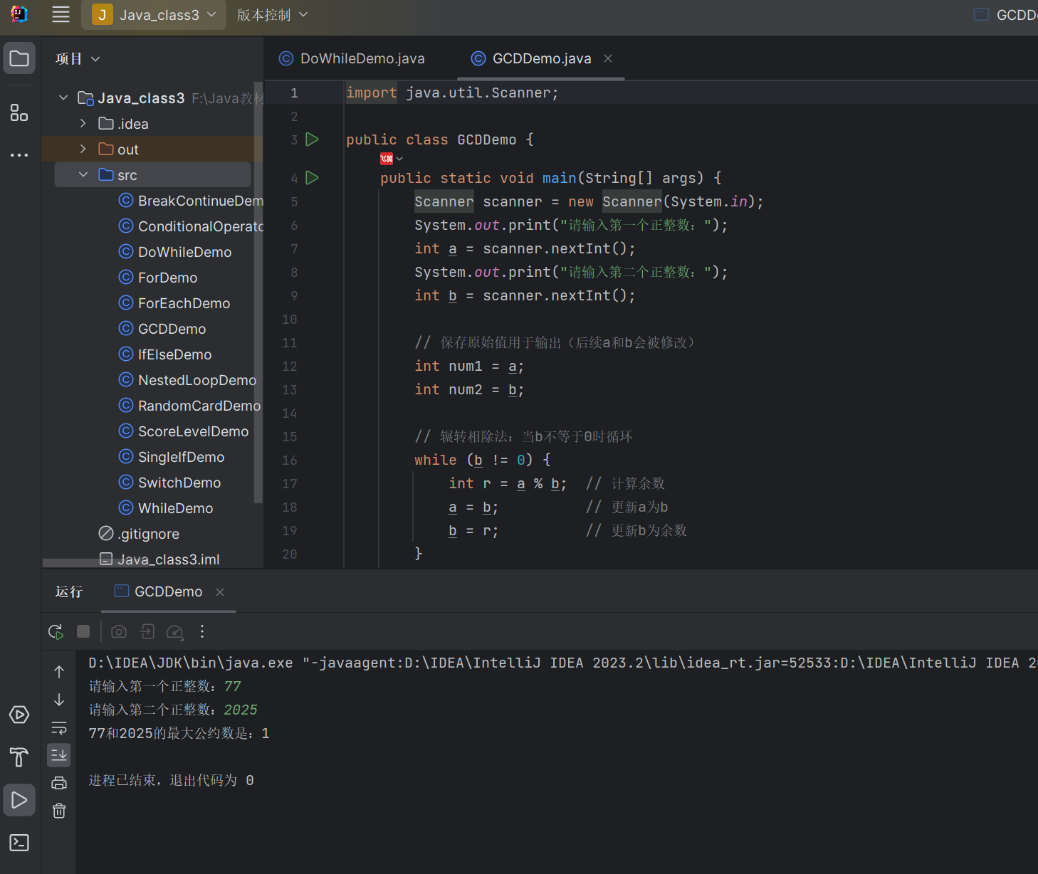 需求:输入两个正整数,求它们的最大公约数(能同时整除两个数的最大整数)。