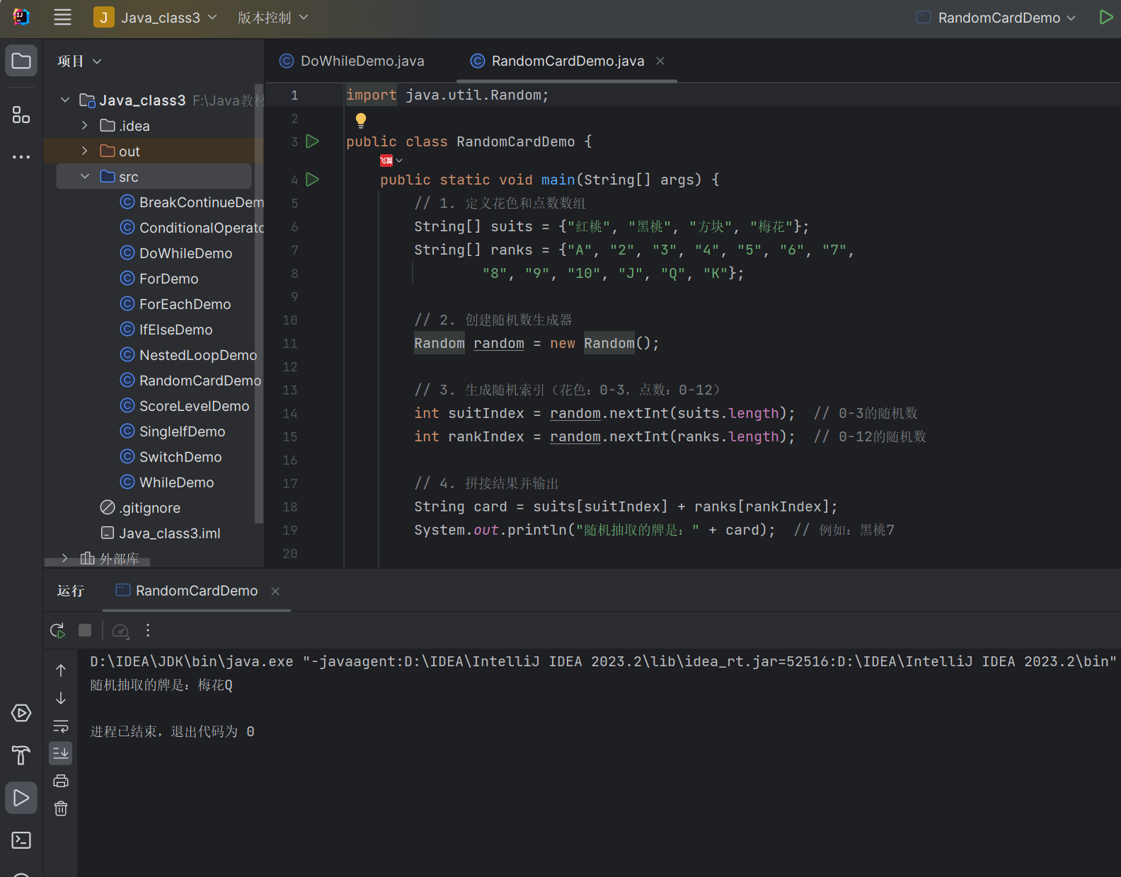 System.out.println("随机抽取的牌是:" + card); // 例如:黑桃7