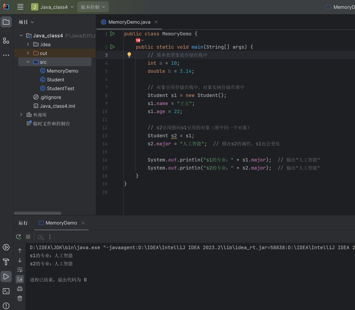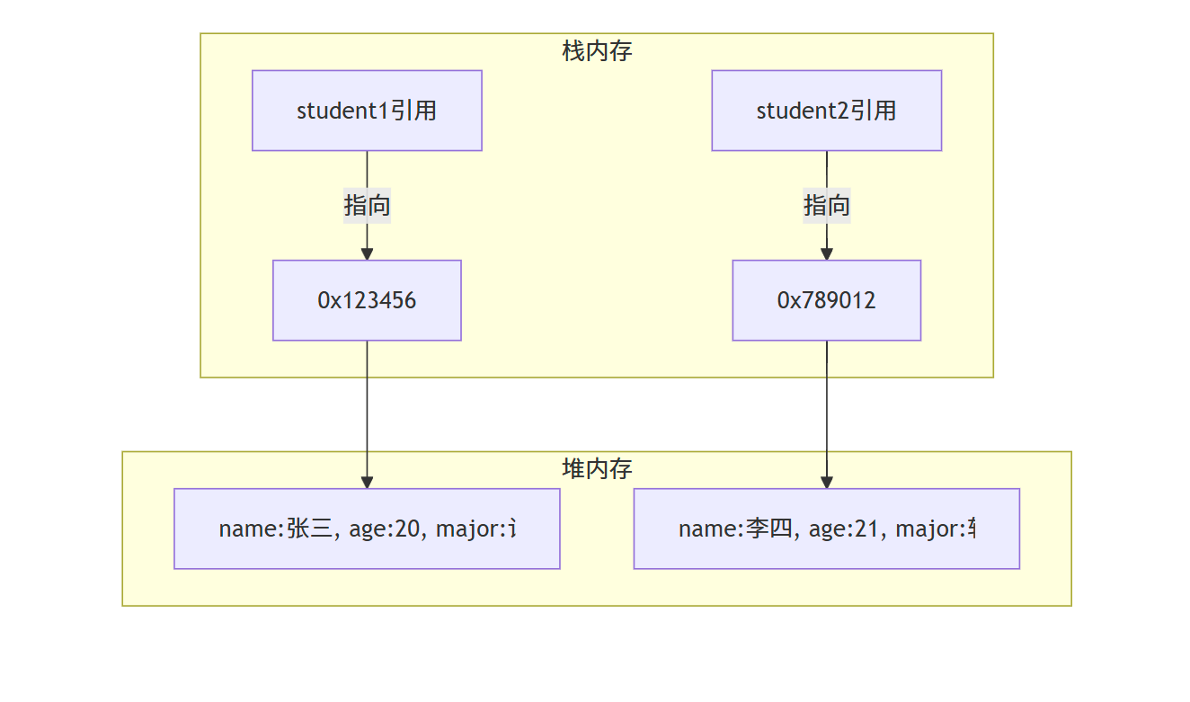 s2.major = "人工智能"; // 修改s2的属性,s1也会变化