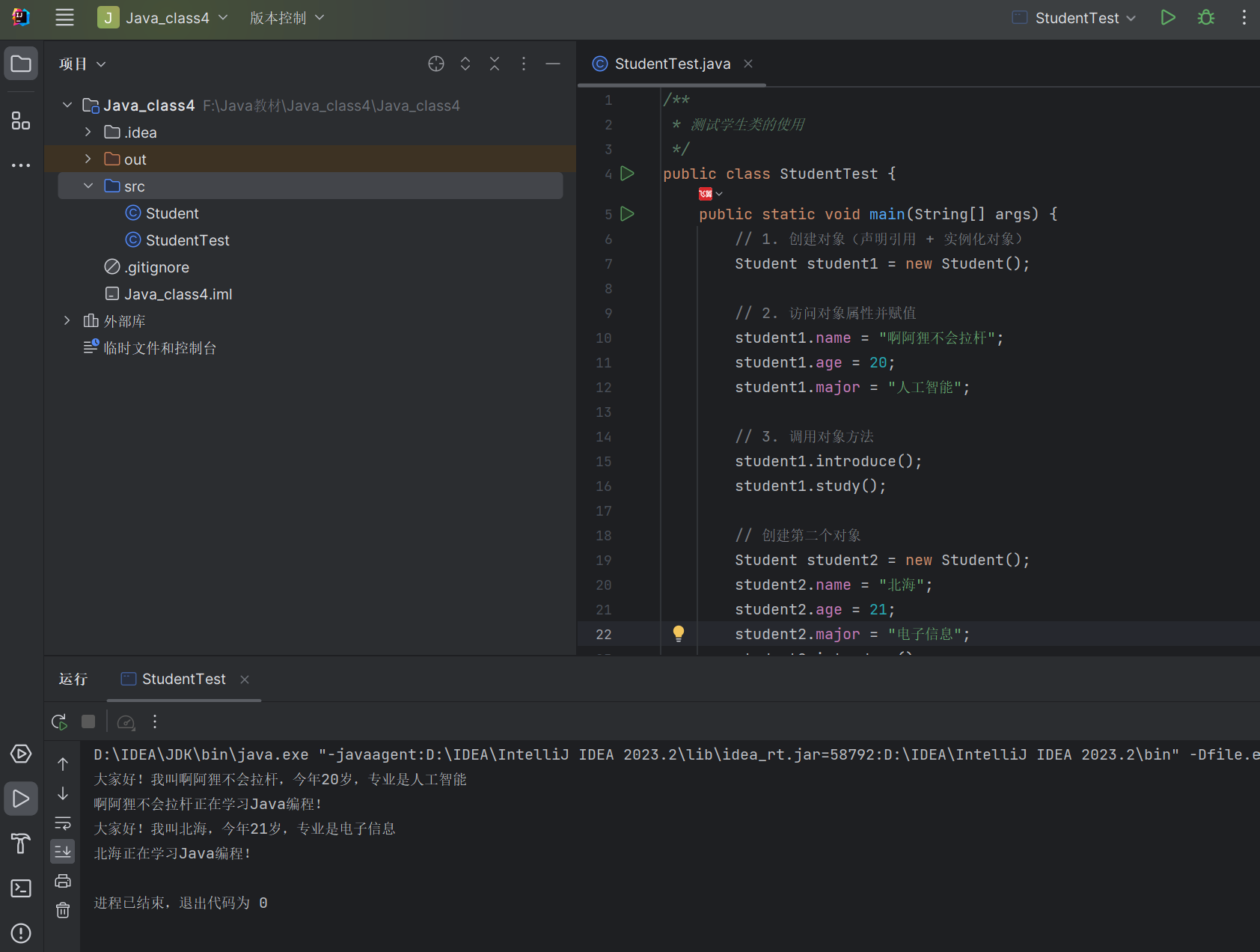 示例:使用 Student 类创建对象