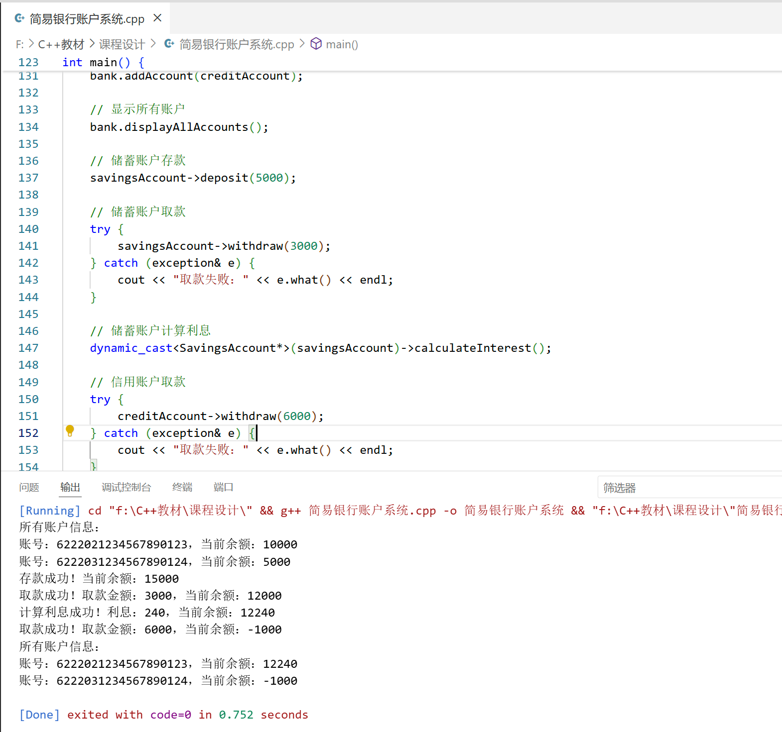 cout << "计算利息成功!利息:" << interest << ",当前余额:" << balance << endl;