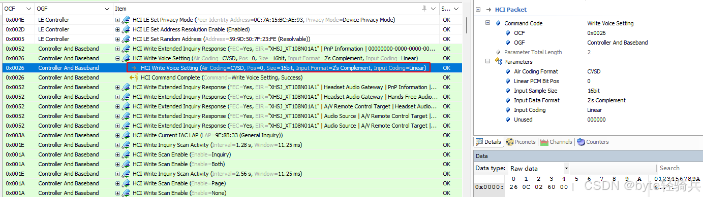 HCI_Write_Voice_Setting 是蓝牙主机控制接口(HCI)中的一个命令。主要作用是写入语音设置(Voice_Setting)配置参数的值。