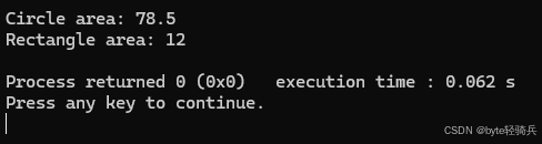 printArea(circle); // 动态调用 Circle::area()包含纯虚函数的类称为抽象类,不能实例化,只能作为基类。