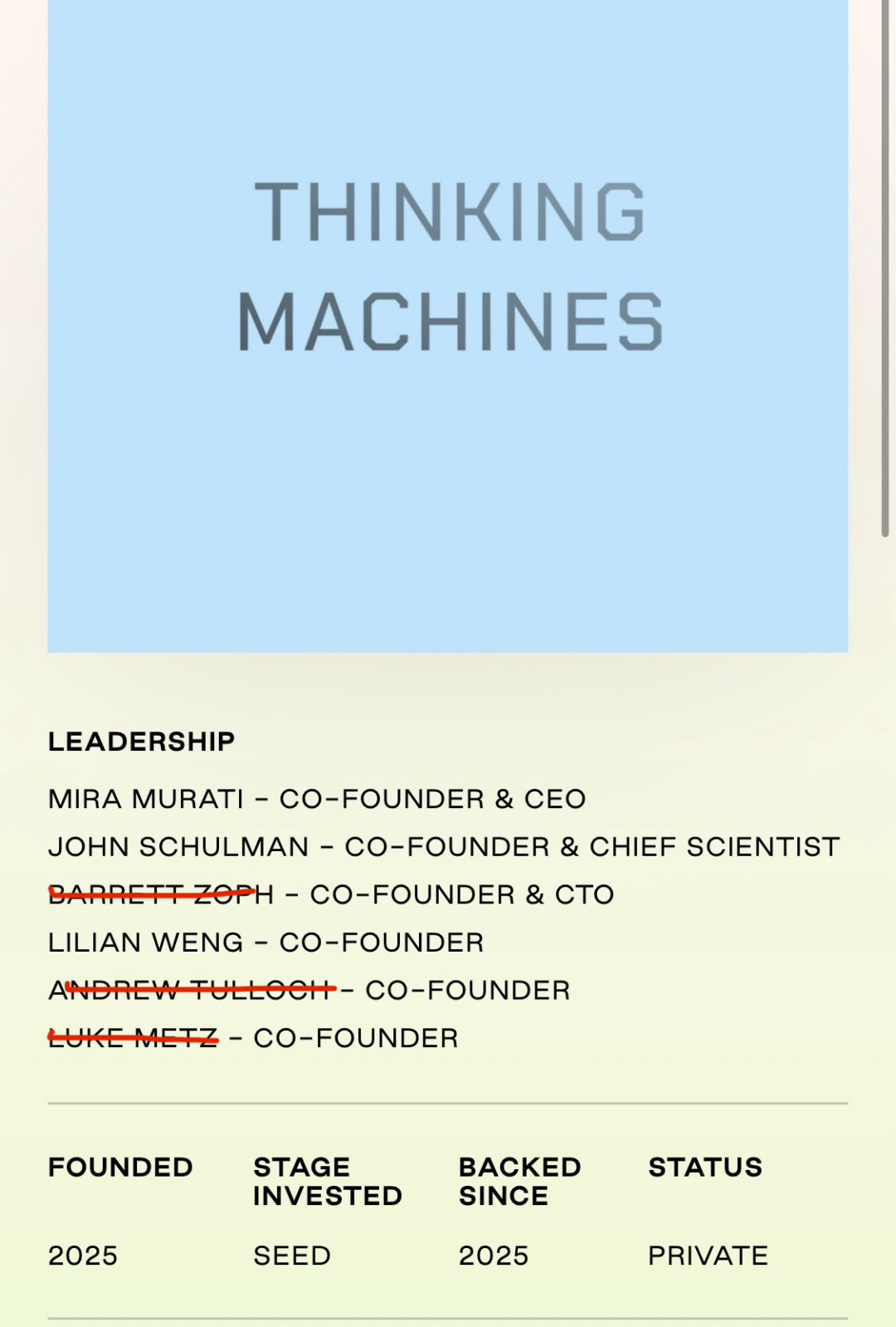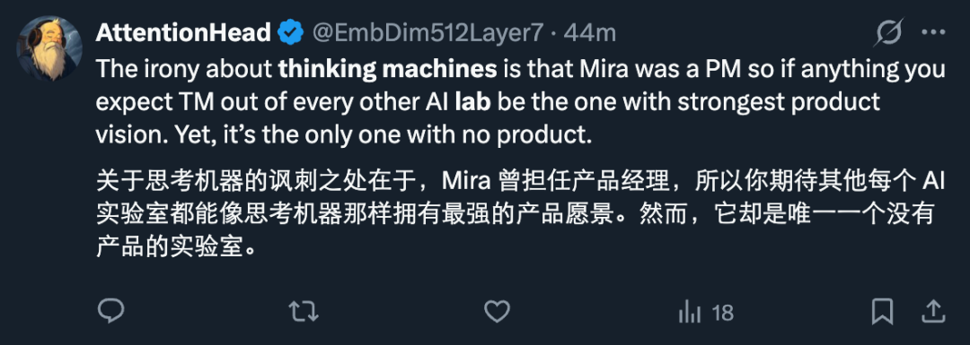 如果再加上之前离开的 PyTorch 大神 Andrew Tulloch,Thinking Machines Lab 目前已失去了三位联创,可谓创业未半,核心团队就散了。