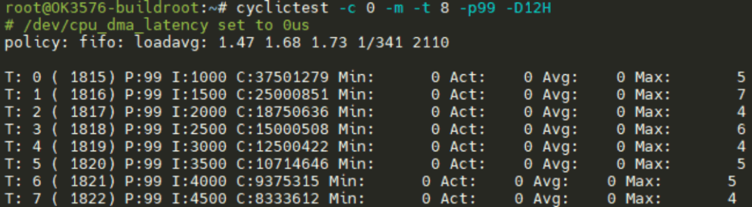 cyclictest -c 0 -m -t 8 -p99 -D12H