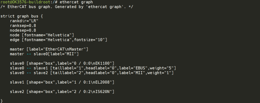 使用EtherCat调试工具输出总线拓扑: