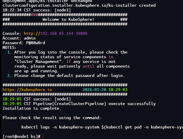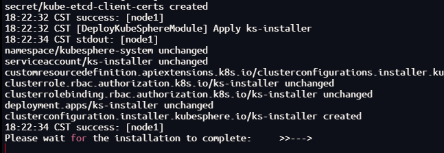 kubectl logs -n kubesphere-system $(kubectl get pod -n kubesphere-system -l 'app in (ks-install, ks-installer)' -o jsonpath='{.items[0].metadata.name}') -f