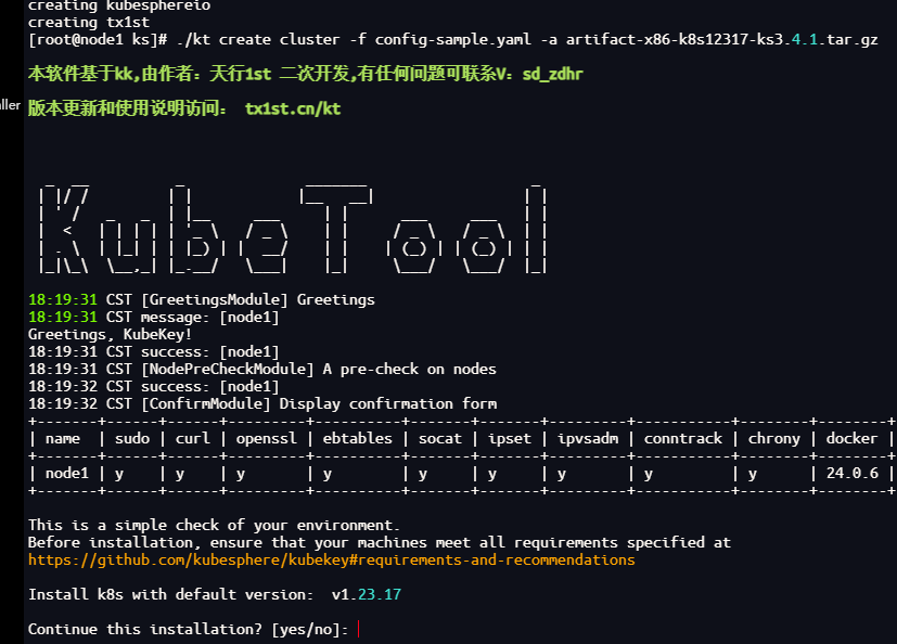 该命令kt会根据配置文件自动判断操作系统和架构以完成所有节点的初始化配置和依赖安装。
