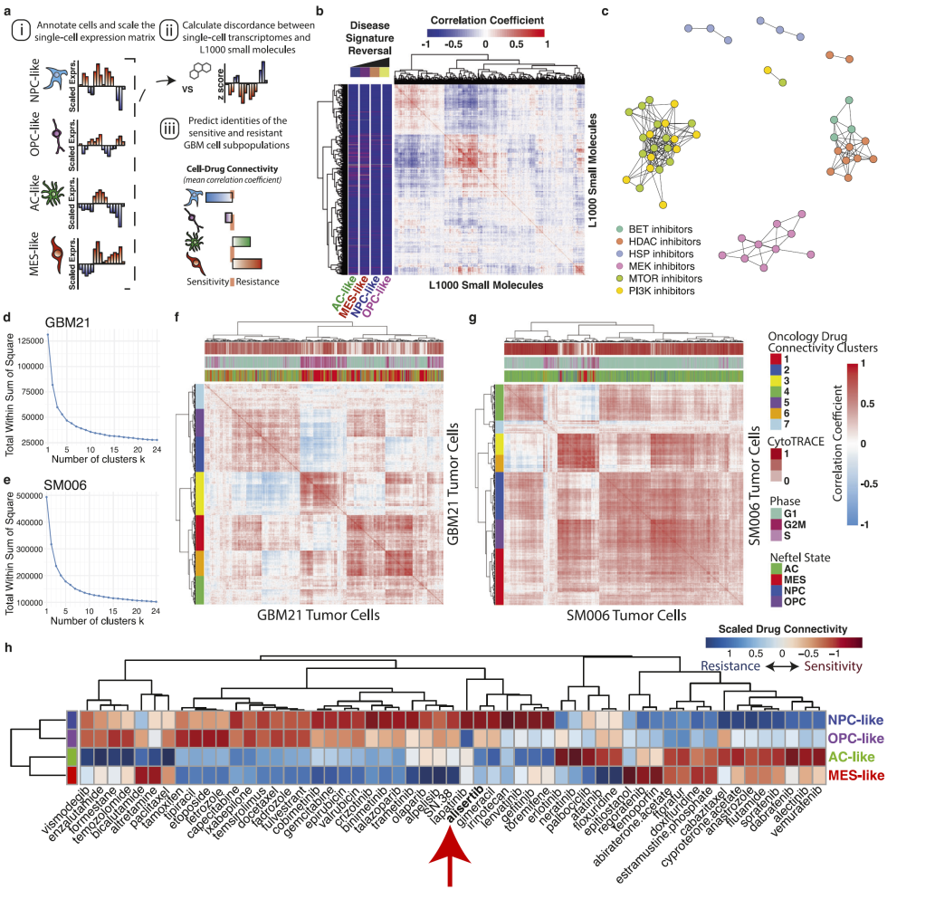 图2|整合单细胞表达与L1000药物特征,实现细胞与药物的连接度聚类。