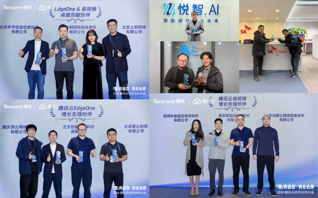 与此同时,在本届峰会上,腾讯云 EdgeOne &音视频合作伙伴颁奖仪式如约而至,北京华宇佳业、上海安畅、北京上知、深圳叁陆伍视讯、杭州星辰数智、深圳腾云、重庆顶云、北京智勤、北京管云、深圳悦智等合作伙伴团队分别收获“卓越贡献伙伴”、“增长先锋伙伴”等奖项。
