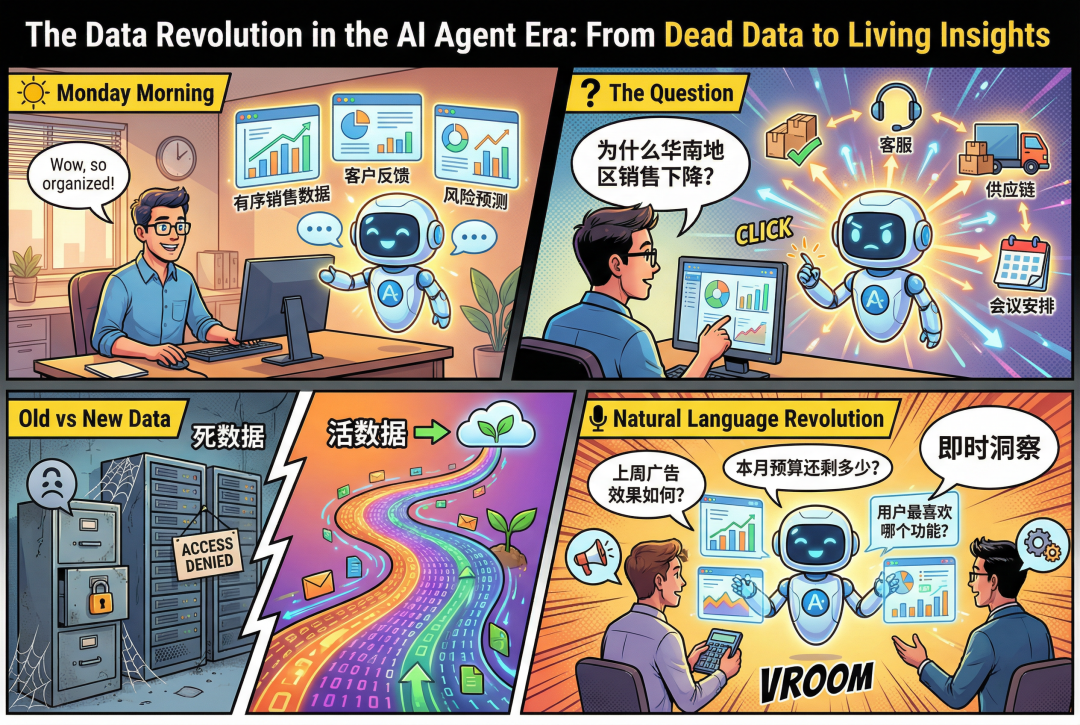 这可能会在2026年的企业里变为日常。智能体将成为企业运营的核心力量,它们需要的不再是被动存储的资料库数据,而是能够主动对话、实时响应的可用数据。