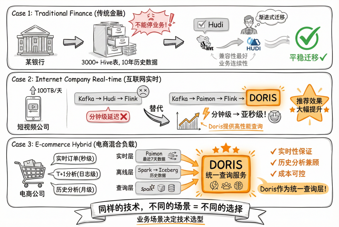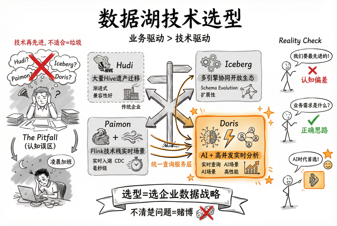从Hudi到Iceberg,从Paimon到Doris,每个技术都有它的闪光点和适用场景。关键是你的业务需要什么,你的团队能驾驭什么,你的运维体系能支撑什么。