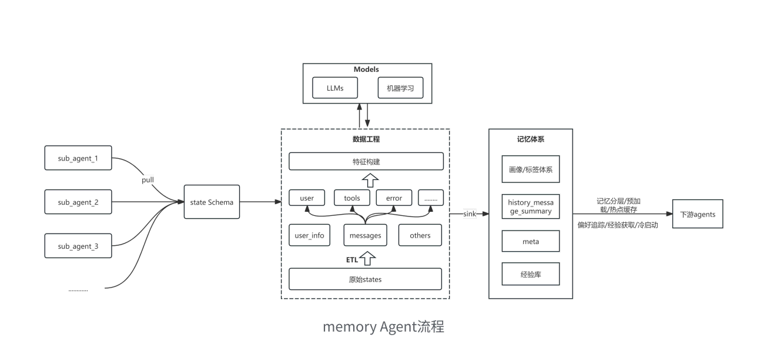 1. 构建⻓期记忆库原始数据集:state json 离线抽取 ->ETL,如使⽤ dataX/Seatunnal PG-ES,使⽤ SQL/python 进⾏数据清洗、分层汇总;