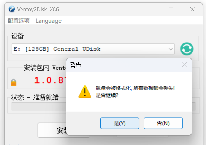 点击安装,格式化