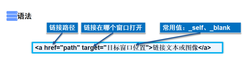 <a href="path" target="目标窗口位置">链接文本或图像</a>