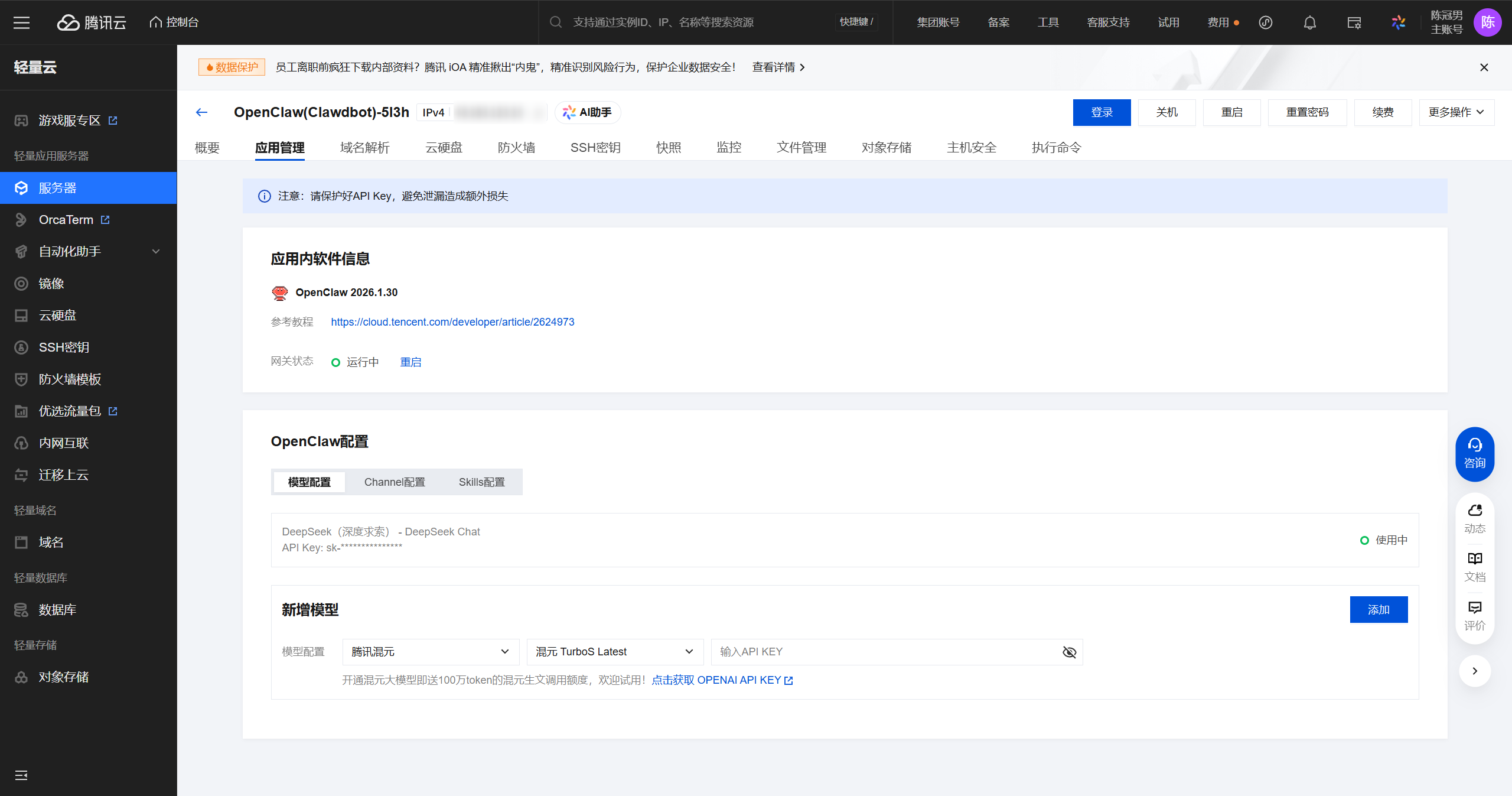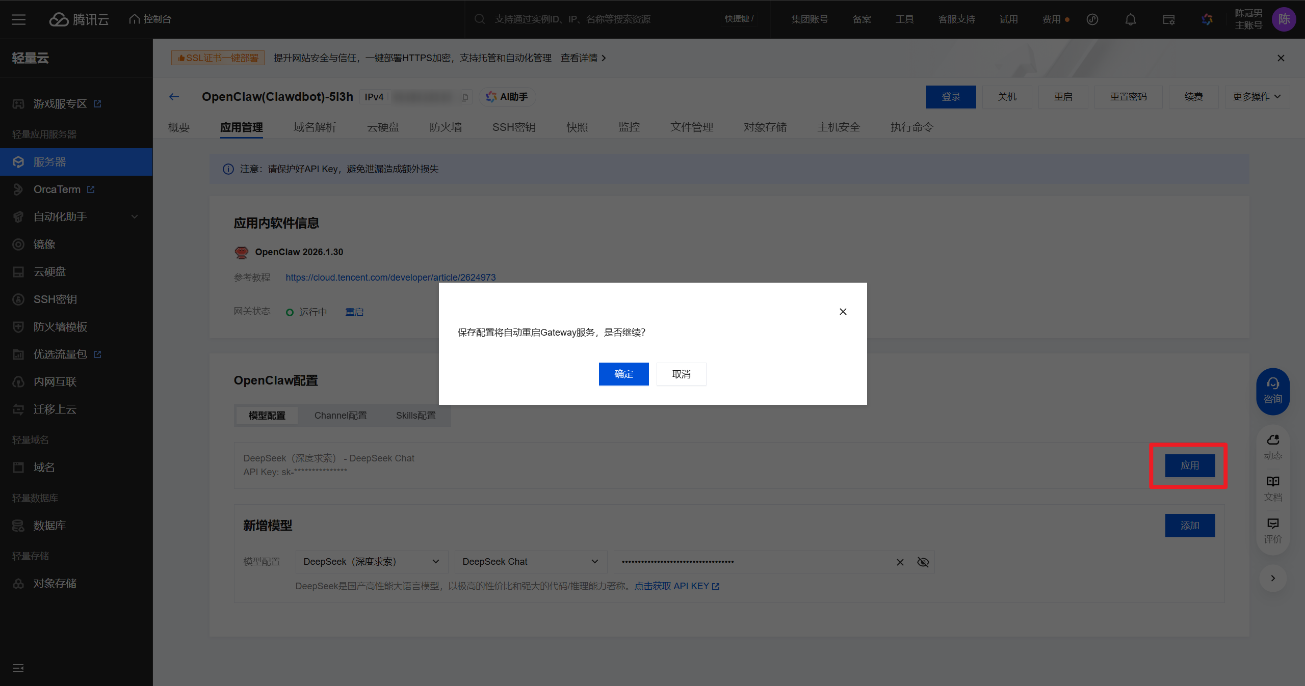 支付完成后进入控制台:https://console.cloud.tencent.com/lighthouse/instance,点击【应用管理】