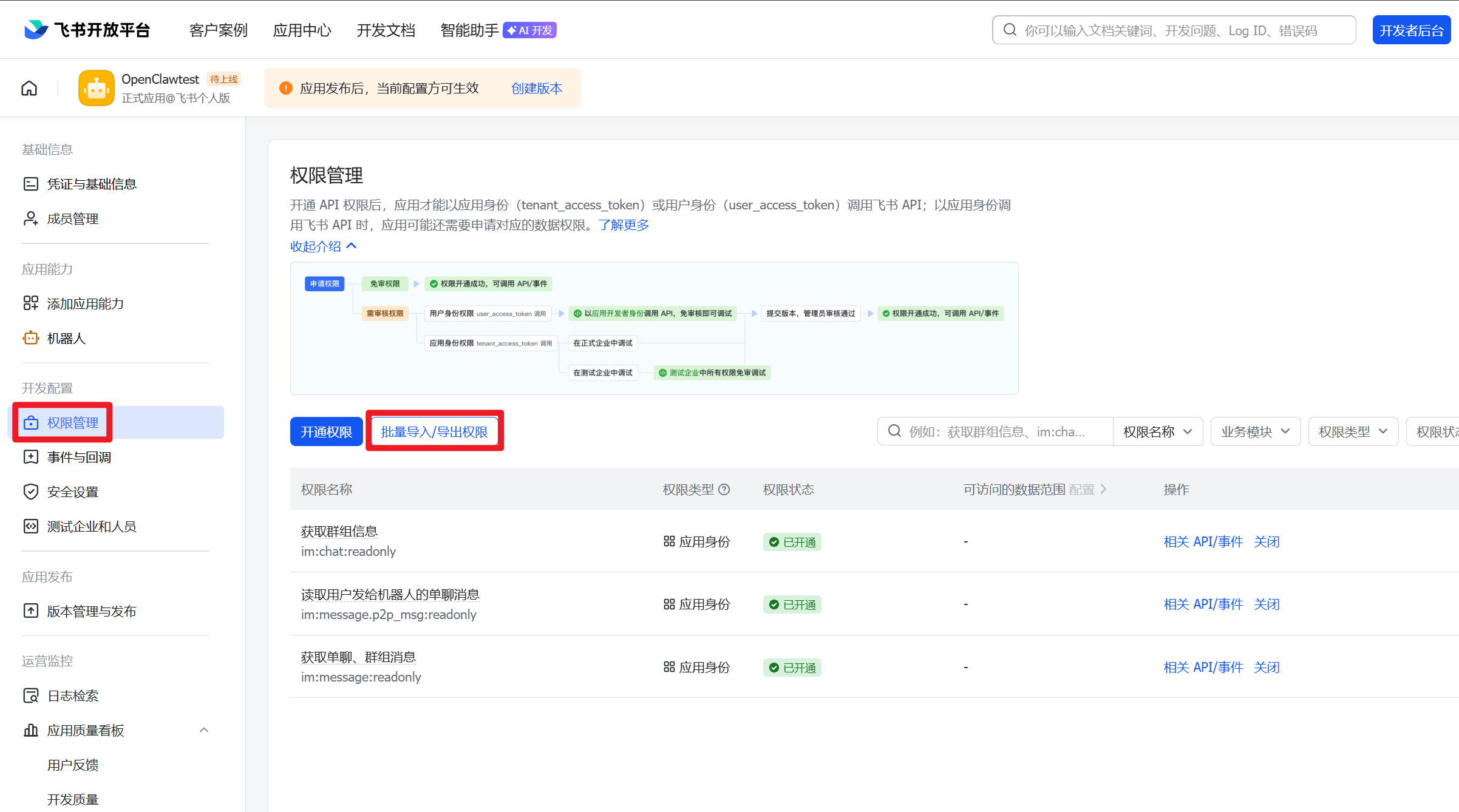 然后找到【权限管理】,点击【批量导入/导出权限】