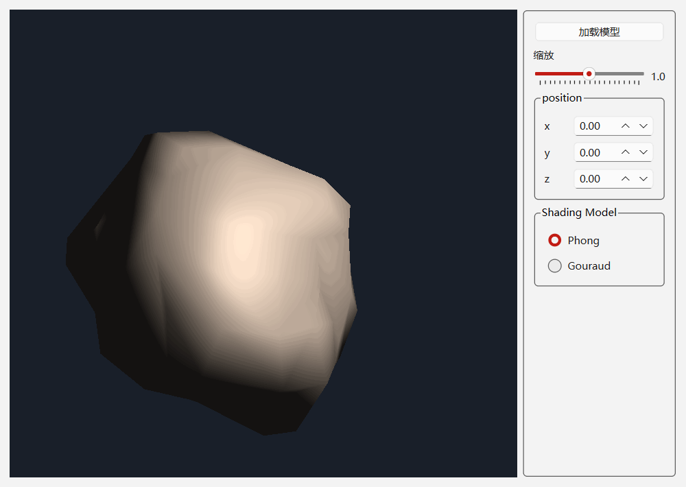 • 逐片元(Phong shading 思路):在片元着色器对每个像素算 ambient + diffuse + specular,细节最丰富。