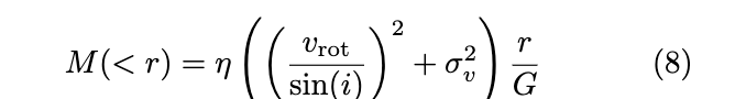 这里使用了与 Lewis et al. (2020) 相同的质量估算器。所有质量计算均使用总体样本进行。在特定半径 rr 内包含的估算质量由下式给出: