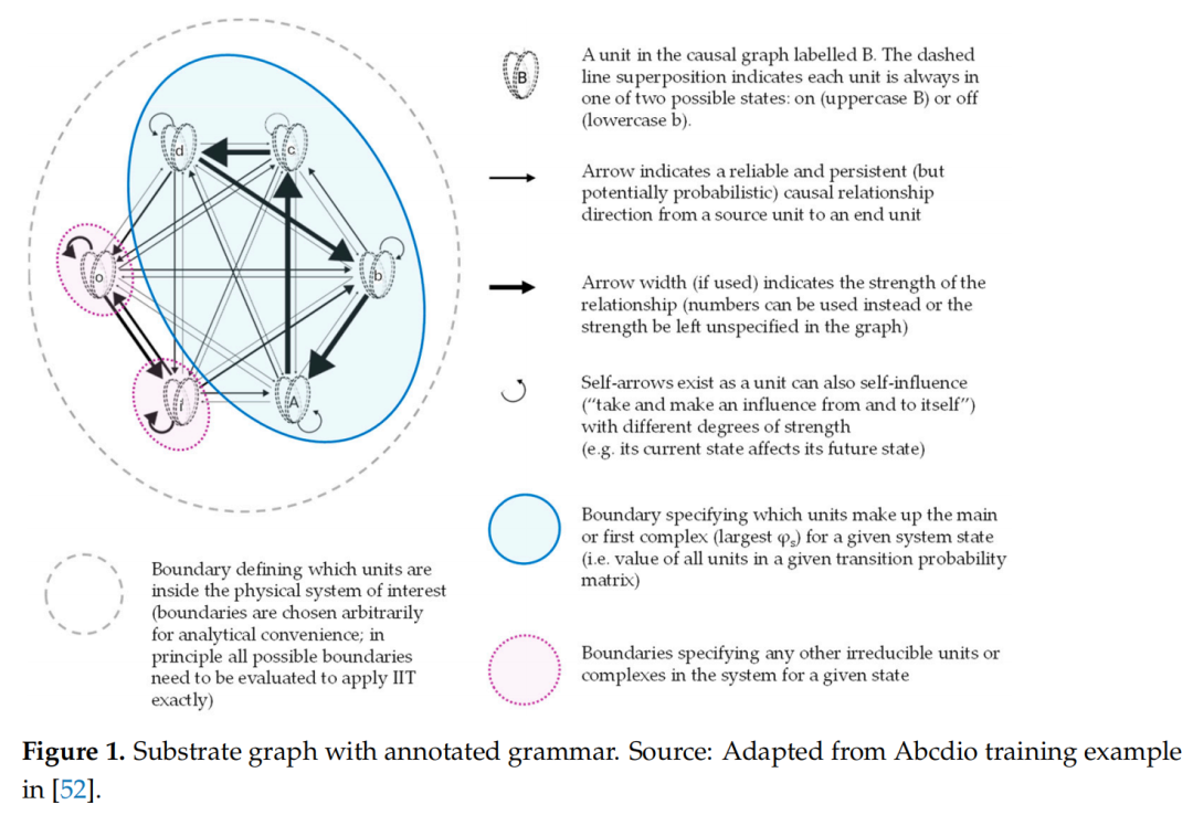 从本质上讲,IIT 认为“存在”与自然科学中的常识概念不同,后者通常认为物理对象是相互作用的存在体。相反,在 IIT 之中,“存在”与“能产生因果影响并受到因果影响”的能力相关,并且它是在“系统”层级上被归类的,而非在“部分”层级上。值得注意的是,IIT 不是唯一一个将存在归于物理对象层级中间层的整体论理论(例如,[50])。关于这一持续进行的整体论辩论的更详细介绍,请参见 [51]。