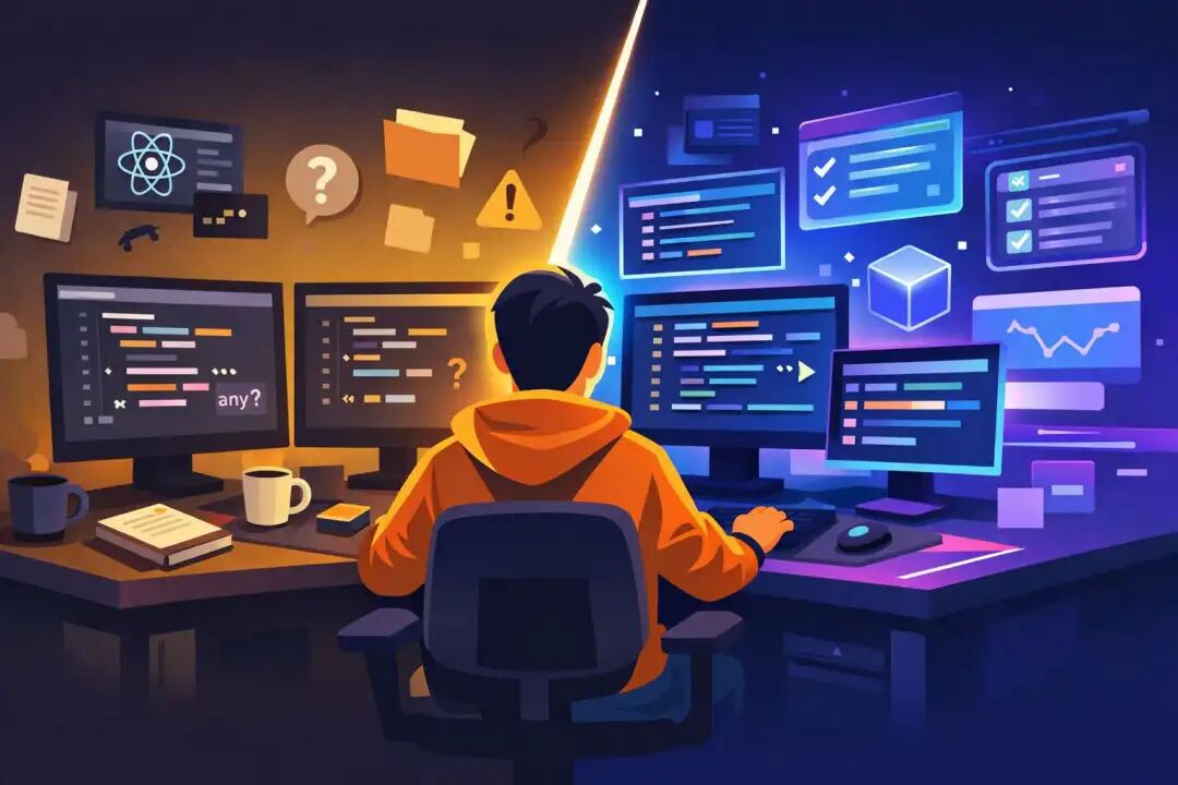打个比方:写 JavaScript 的 React 项目,就像在没有地图的城市里开车。你大概知道方向,但每次拐弯都要猜一猜——这个 props 到底传了什么?这个函数的返回值是啥类型?出了 bug 才发现原来走错了路。