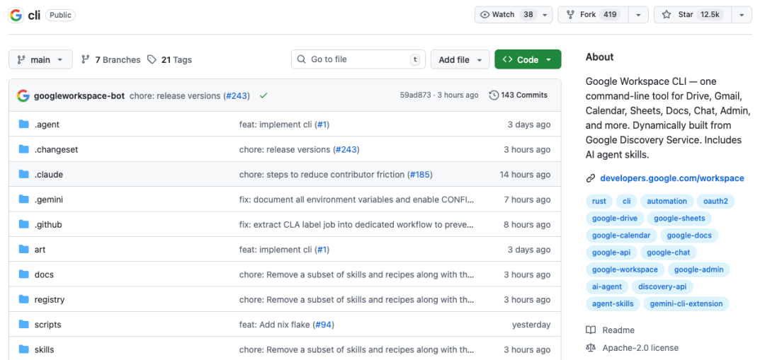 它没有发什么花哨的 Chatbot,而是极其硬核地在 GitHub 上开源了一个命令行工具——gws (Google Workspace CLI)。