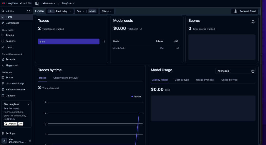 LANGFUSE_BASE_URL = "http://127.0.0.1:3000"然后代码层面接入,可以看到,只需要在函数上添加装饰器